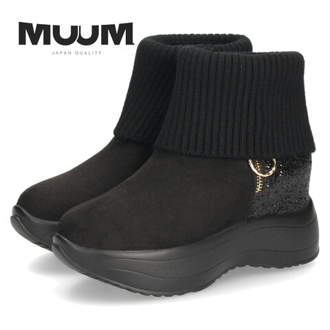 ブーツ レディース 厚底 グリッターリブニットインヒールショートブーツ 靴 ファスナー 黒 ブラックスエード スチール ムーム MUUM XJ304 LLサイズ ブラックスエード
