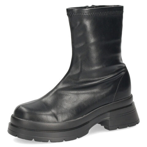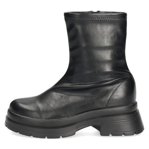 安定感のある厚底トラックソールに、脱ぎ履きがスムーズなサイドジップを備えたレディースショートブーツ。