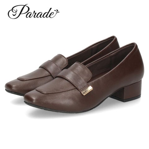 ローファー 靴 ベルトロファーパンプス スクエアトゥ ブラック ブラウン パレード 51105 Parade Sサイズ ダークブラウン