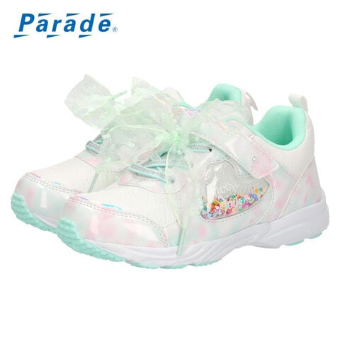 スニーカー 女の子 キッズ 幅広 3E 軽量 屈曲ソール 通気性 マジックテープ リボン付き Parade パレード 56203 19.0cm ホワイト