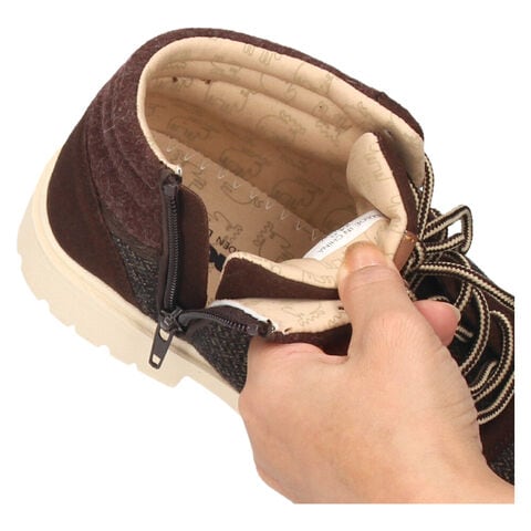 内側のサイドファスナーで着脱もしやすいところも嬉しい!滑りにくい凹凸加工が施された防滑仕様。