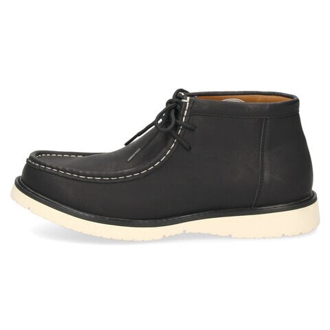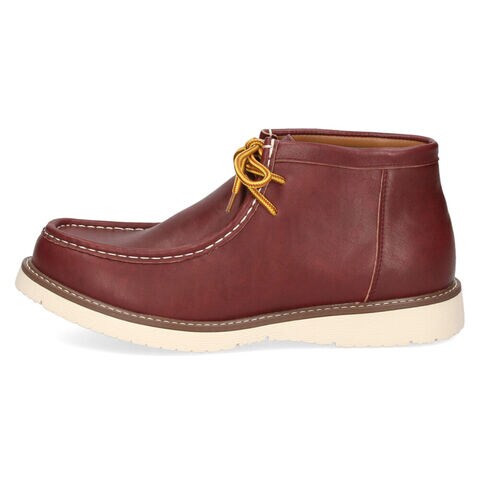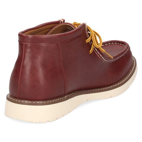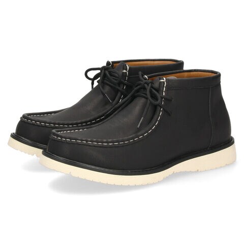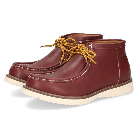 アッパーには合成皮革を使用し、手入れも簡単。程よい高さのアンクル丈と、レースアップ仕様でフィット感も調整しやすく、通勤や休日のカジュアルスタイルにぴったりです。