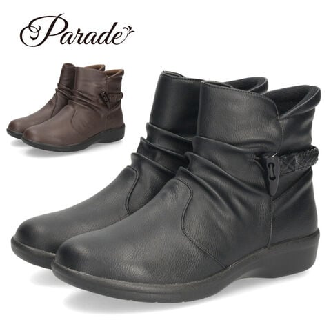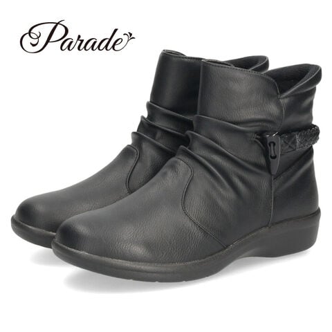 ショートブーツ レディース ブーツ 防水 防寒 幅広 4E ゆったり 晴雨兼用 Parade パレード 52907 25.0cm ブラック