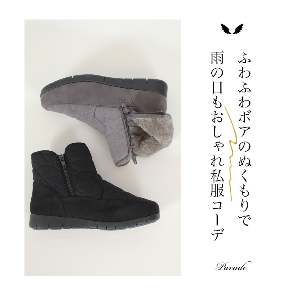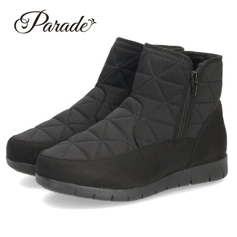 ブーツ 防寒 ボア 防水 ショートブーツ レディース 幅広 3E ゆったり スノーブーツ 冬 雪 黒 ブラック パレード 52901 Parade Lサイズ ブラック