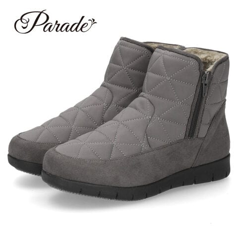 ブーツ 防寒 ボア 防水 ショートブーツ レディース 幅広 3E ゆったり スノーブーツ 冬 雪 黒 ブラック パレード 52901 Parade LLサイズ グレー
