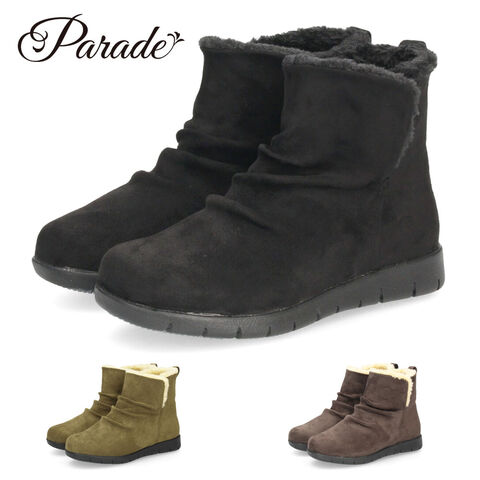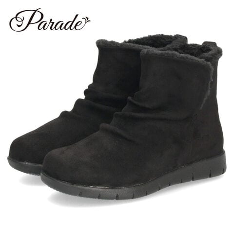 ショートブーツ レディース 防水 幅広 シンプル Parade 52909 Lサイズ ブラック