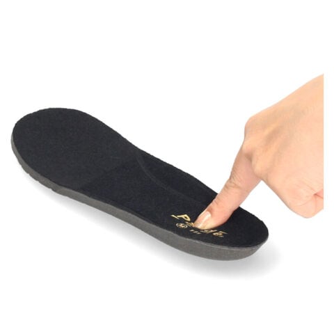 アッパーは落ち着いたブラックカラーで、スエード調の素材感がカジュアルにもきれいめにもマッチ。