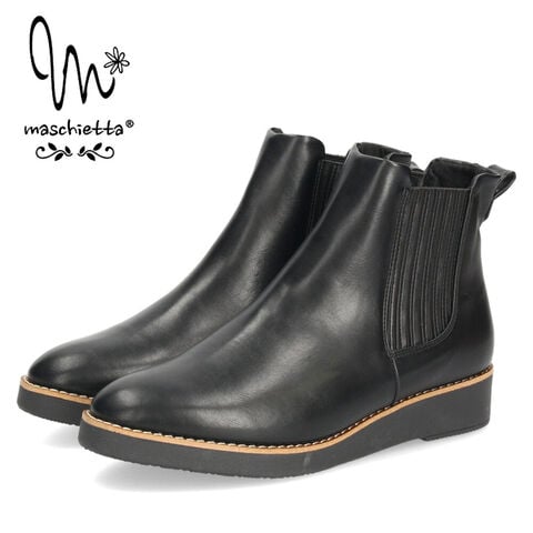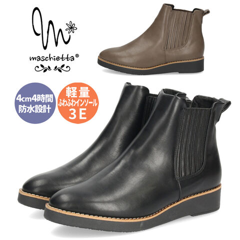 サイドゴアブーツ レディース ブーツ 靴 防水 3E 幅広 軽量 防滑 快適 ショートブーツ カジュアル 6972 maschietta マスチェッタ 23.0cm ブラック