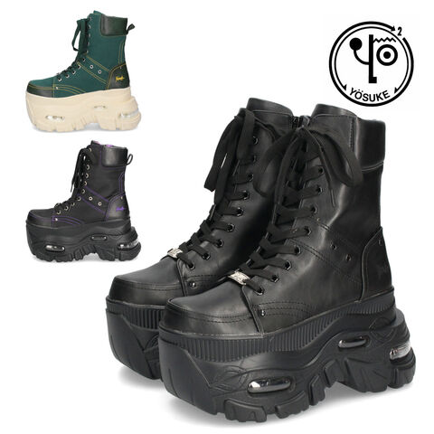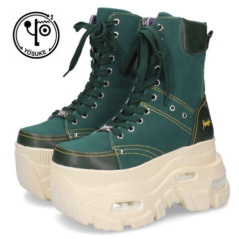 ヨースケ 厚底ハイカットスニーカー レディース レースアップ サイドファスナー 靴 YOSUKE 4460114 Sサイズ グリーンコンビ