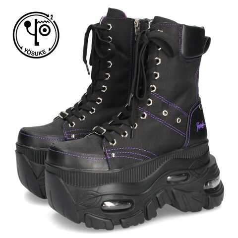 ヨースケ 厚底ハイカットスニーカー レディース レースアップ サイドファスナー 靴 YOSUKE 4460114 Sサイズ ブラックパープル