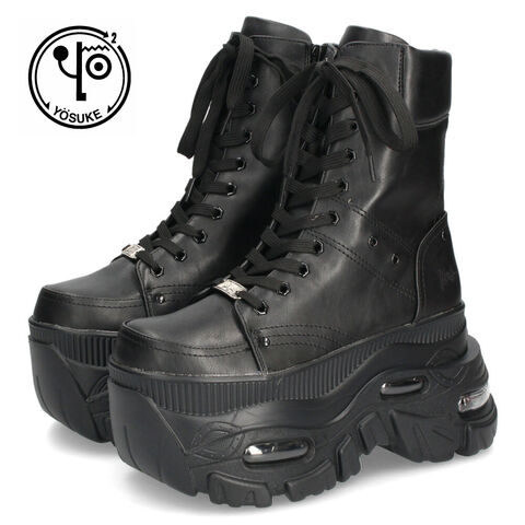 ヨースケ 厚底ハイカットスニーカー レディース レースアップ サイドファスナー 靴 YOSUKE 4460114 Mサイズ ブラック