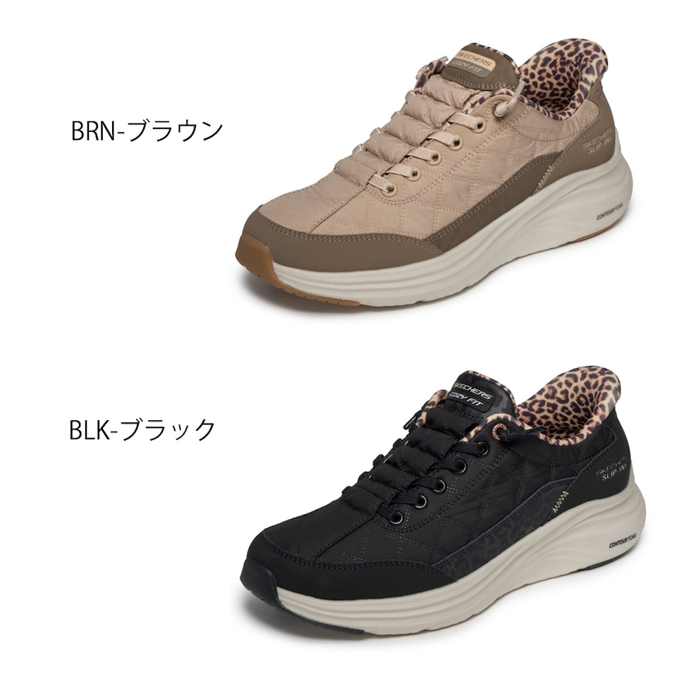 スケッチャーズ スリップインズ レディース スニーカー コンツアーフォーム‐コージーフィットレオパード ドリーム ノーマル幅 ゴム紐 SKECHERS Slip-ins 150419 22.5cm BRN-ブラウン