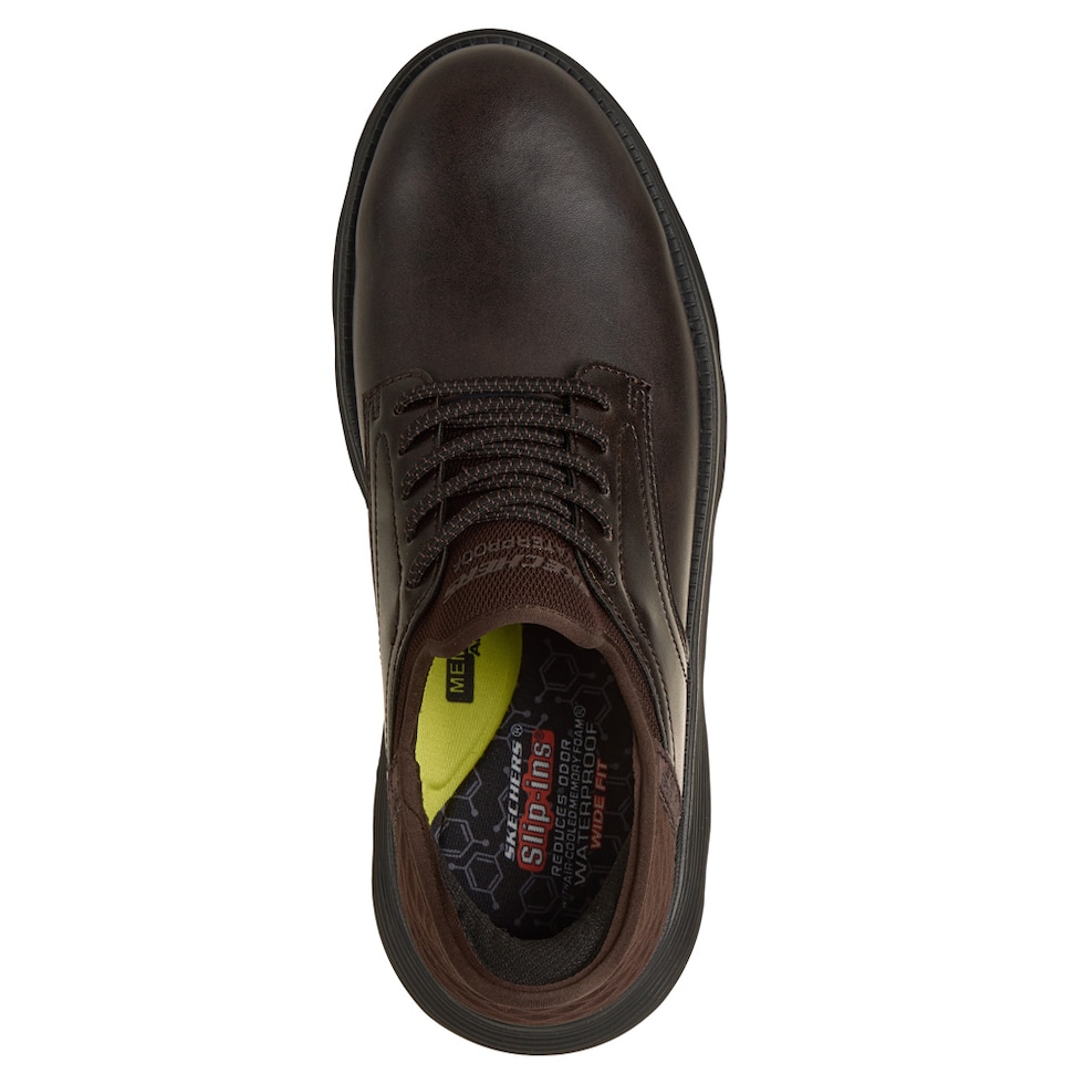 防水設計で雨の日も安心。上品なレザーアッパーが、ビジネスからカジュアルまで幅広く対応。