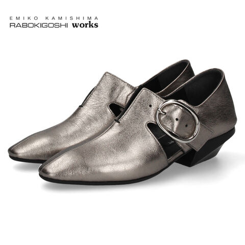 ラボキゴシ ワークス レディース パンプス 本革 ローヒール スクエアトゥ 2WEY 靴 RABOKIGOSHI works 12854 24.5cm ダークシルバー