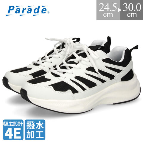スニーカー メンズ 紐 靴 撥水加工 4E 幅広 ローカット 軽量 通勤 通学 ウォーキング Parade パレード 58303 25.0cm ホワイトブラック