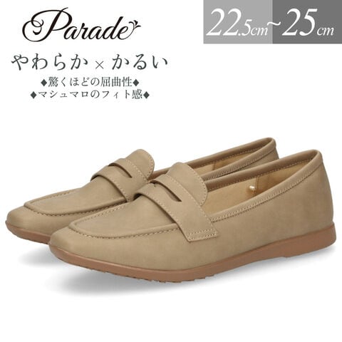 レディース パンプス ローファー フラットパンプス 靴 柔らか 軽量 屈曲性 3E ふかふかクッション Parade パレード 51117 24.0cm オーク