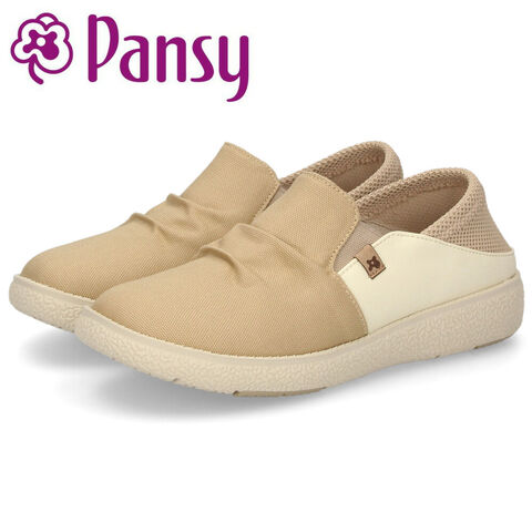 スリッポン レディース かかとが踏める 幅広 4E 軽量 靴 2WAY Pansy パンジー PS1402 パンジーハーツ 24.5cm ベージュ