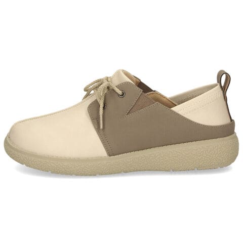 脱ぎ履きに便利なサイドゴムに加え、かかと部分を踏んでサンダルのように履ける2WAY仕様で、サッと履ける手軽さも魅力です。かかとを立ててしっかり歩くこともでき、シーンに合わせた使い分けが可能です。