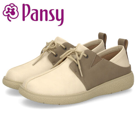 レースアップシューズ レディース 幅広 4E かかとが踏める 靴 2WAY 軽量 Pansy パンジー PS1522 パンジーハーツ 23.0cm アイボリー