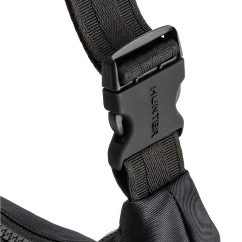 ナイロンミディホーボーは、半月型のデイリーユースに最適な新しいシルエットのバックです。外側は耐水性のリサイクルナイロン、裏地にはリサイクルポリエステルのライニングを使用しています。ストラップは長さ調節が可能でショルダーバッグとしてもクロスボディとしても使用できます。ハンターのシグネチャーであるエンボス加工のトップクリップが付いています。