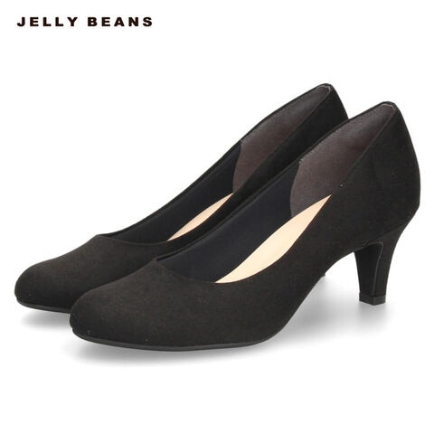 レディース パンプス ジェリービーンズ 6cm ヒール ふわさら 日本製 ラウンドトゥ 靴 JELLY BEANS 113-44360 25.5cm ブラックスエード
