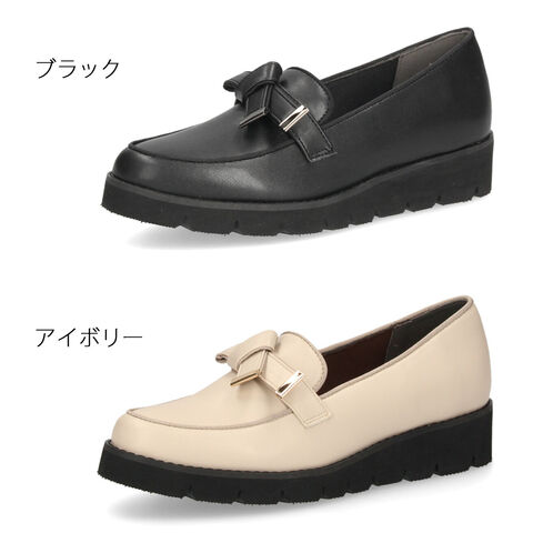 レディース ローファー ジェリービーンズ ノットリボン 厚底 ボリュームソール JELLY BEANS 325-59134 23.5cm ブラック