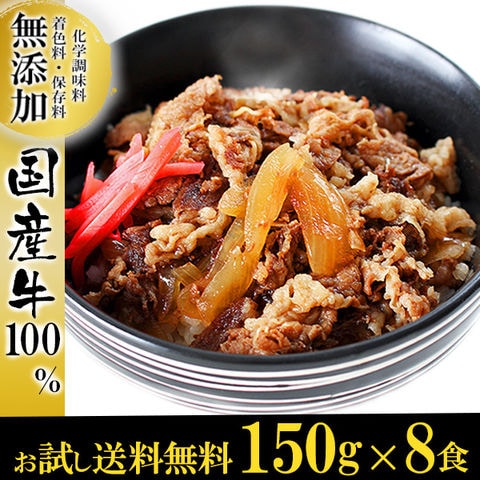 無添加 国産 牛丼 レトルト 牛肉 牛丼の具 150g×8パック ごはんもの 冷凍 グルメ 送料無料 惣菜