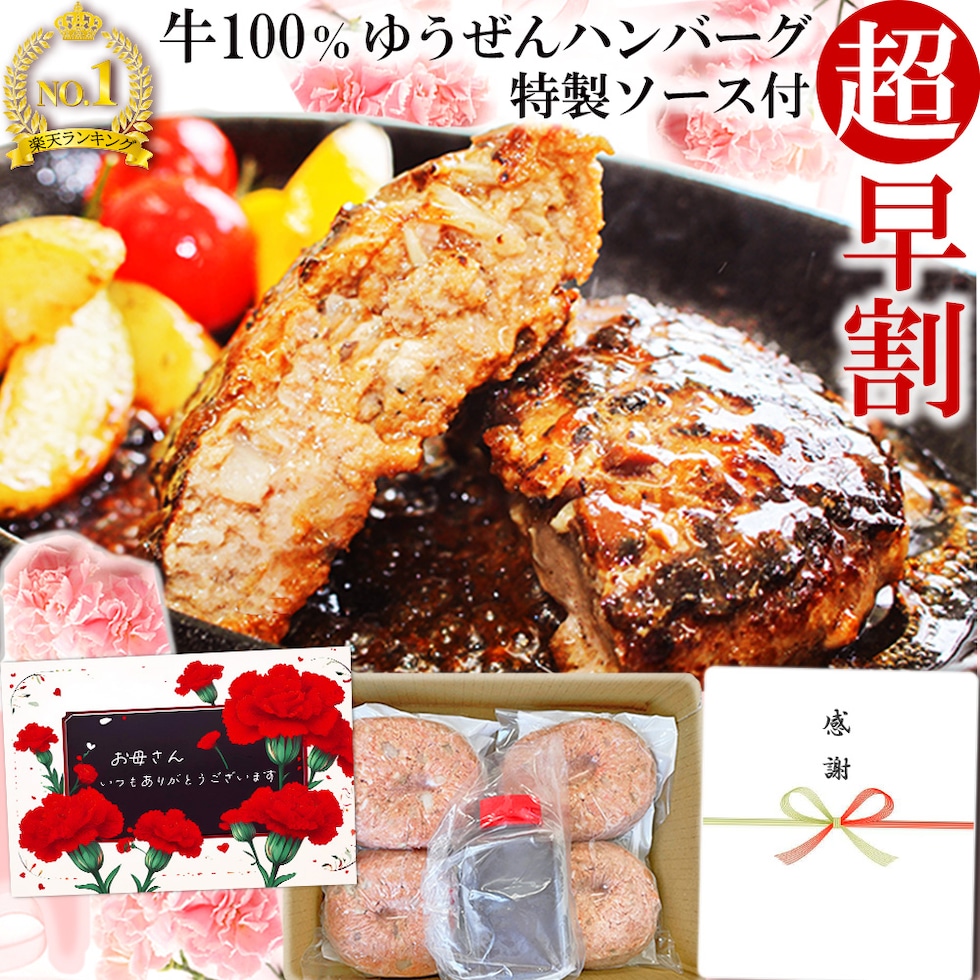 無添加 ギフト 牛100% ゆうぜんハンバーグ 150g×4個 (2個真空×2パック) 専用ソース 送料無料 肉 冷凍 お取り寄せ