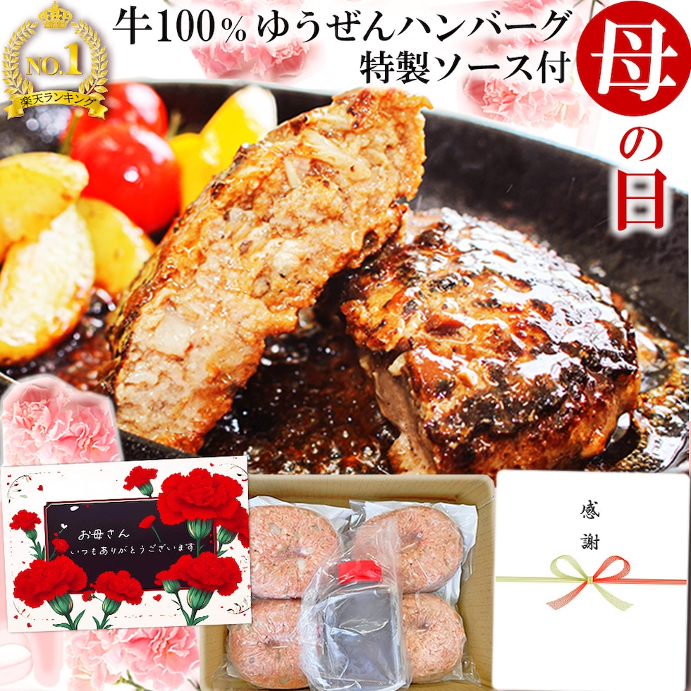 [4/30迄!母の日早割クーポン] 無添加 ギフト 牛100% ゆうぜんハンバーグ 150g×4個 (2個真空×2パック) 専用ソース 送料無料 肉 冷凍 お取り寄せ