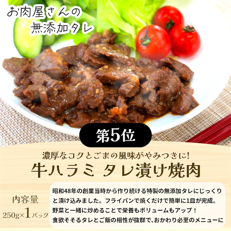 | 牛ハラミタレ漬け焼肉 | 250g × 1パック | 牛肉(オーストラリアまたはポーランド)、タレ(醤油、みりん、砂糖、味噌、玉ねぎ、ごま油、牛脂、トマトピューレ、ワイン、リンゴピューレ、コーンスターチ、生姜、ニンニク、酢、豆板醤、食塩、コショウ)、ごま(一部に小麦・大豆・牛肉・ごま・りんごを含む) |