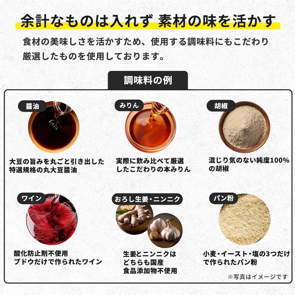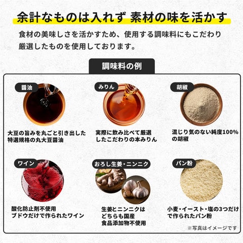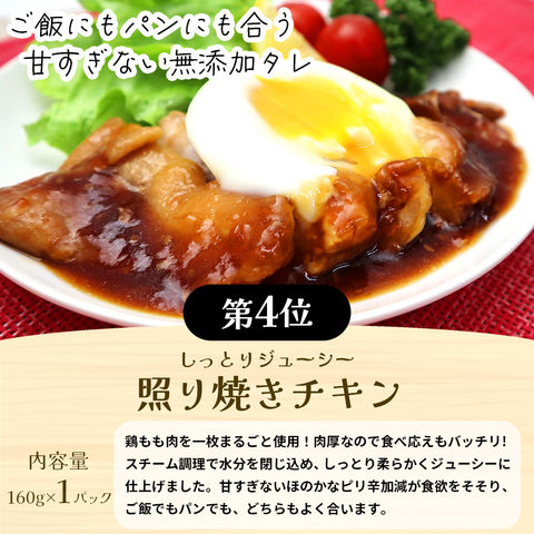 | 照焼チキン | 160g × 1パック | 鶏モモ肉(ブラジル産)、みりん、醤油、酒、砂糖、コーンスターチ、ごま、生姜、豆板醤、 (一部に小麦・鶏肉・大豆、ごまを含む) |