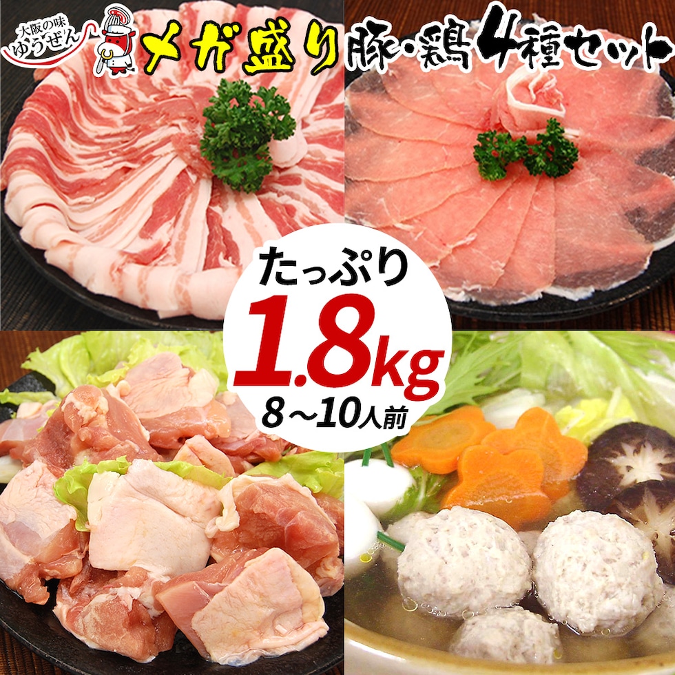 鶏肉 豚肉 鍋 肉 セット たっぷり1.8kg 4種の 鍋セット 豚ロース 豚バラ 鶏もも 鶏つみれ しゃぶしゃぶ お鍋 でほっこり温まろう