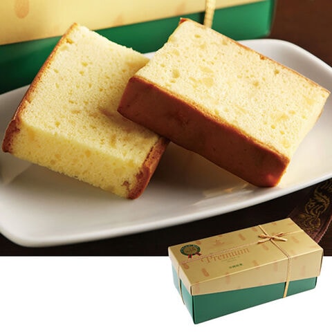 鶏卵、小麦粉、砂糖、ドライパイン、マーガリン、加糖練乳、ブランデー、塩、膨張剤、増粘剤(キサンタンガム)、乳化剤、香料、酸化防止剤(V.E)、着色料(カロチン)(原材料の一部に乳、大豆を含む)