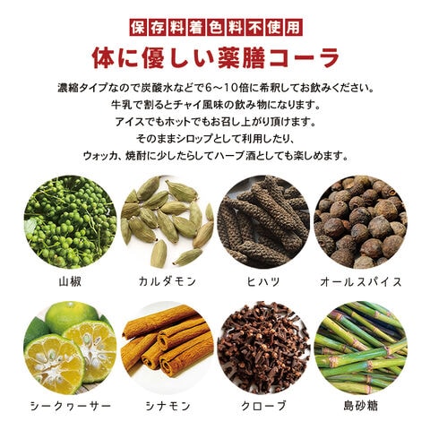 体に優しい薬膳のコーラとして保存料、着色料は不使用です。