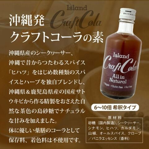 アイランド クラフトコーラ 300ml 2個セット【ヴィーガン・グルテンフリー・ナッツフリー】送料無料 沖縄 お土産 薬膳 グルメ コーラ シークヮーサー サトウキビ ノンカフェイン プレゼント ギフト お取り寄せ 贈り物 人気 定番 ご当地グルメ 沖縄お土産