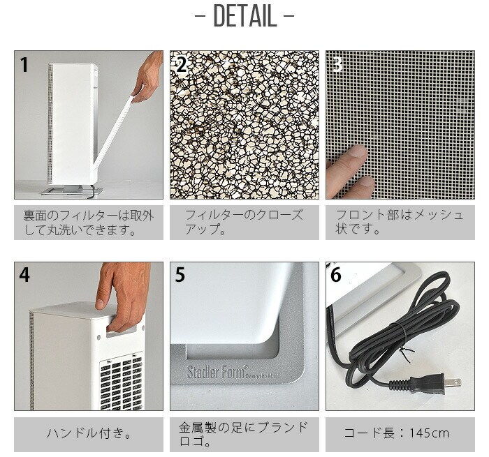 楽しいライフスタイルを充実させるために、実生活に役に立つ商品を提案するスイス発の「Stadler Form(スタドラーフォーム)」から、タッチパネル式ファンヒーター「Anna Big」のご紹介です。 冷え切った室内の空気も、ボタン1つで素早くあたためてくれるファンヒータです。簡単に持ち運べるコンパクト設計ながら、消費電力1000Wとパワフルスペックで、リビングの隅々まで暖かくしてくれます。0~35℃の設定温度と、8段階の風力設定で細かな調整が可能です。またオートモードにする事で、アダプトヒートテクノロジーが発動し、室内温度の極端な上下を抑え、理想的で安定した暖かさをキープする事ができるので、より快適に過ごす事ができます。 本体トップに配置されたタッチパネルがスタイリッシュで、余計なボタンがなく、シンプルで高級感のある佇まいで、インテリアとして魅力的な雰囲気を演出してくれます。もちろん使い方もシンプルで簡単! 温度の急激な上昇を抑えるPTCヒーター(半導体セラミック製)、温度過昇防止用サーモスタット、転倒防止の3つの機能が、安全面を万全にサポート。もしもの時にも安心です!お手入れはフィルターを取り外し丸洗いできます。送風モードにすればサーキュレーターとしても機能するので、幅広い季節に対応します。