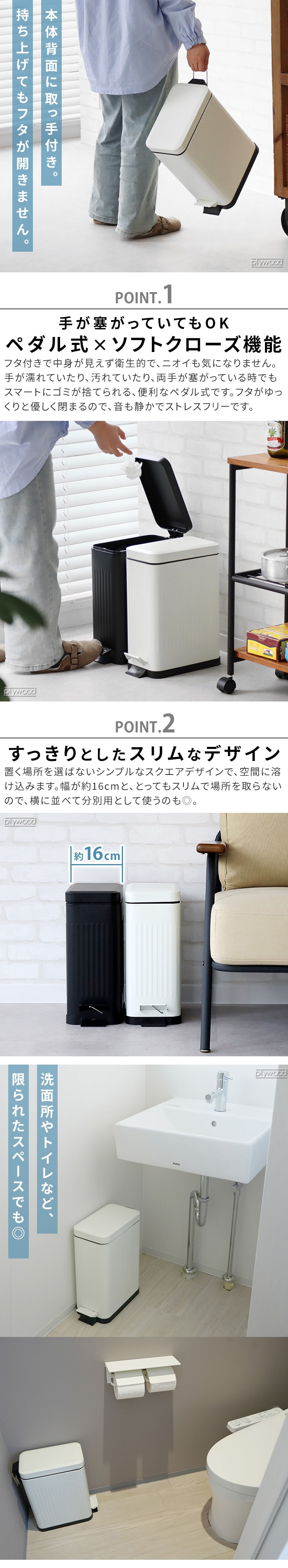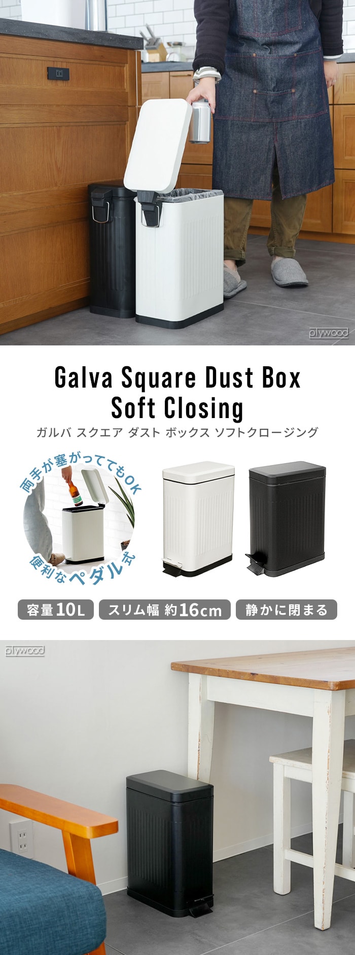 ガルバ スクエアダストボックス ソフトクロージング 10L Galva square dust box soft closing ≪マットブラック≫ ゴミ箱 ふた付き ペダル式 小さい ダストボックス ダストカン スリム ペダルで開閉 クール シンプル かっこいい スタイリッシュ キッチン