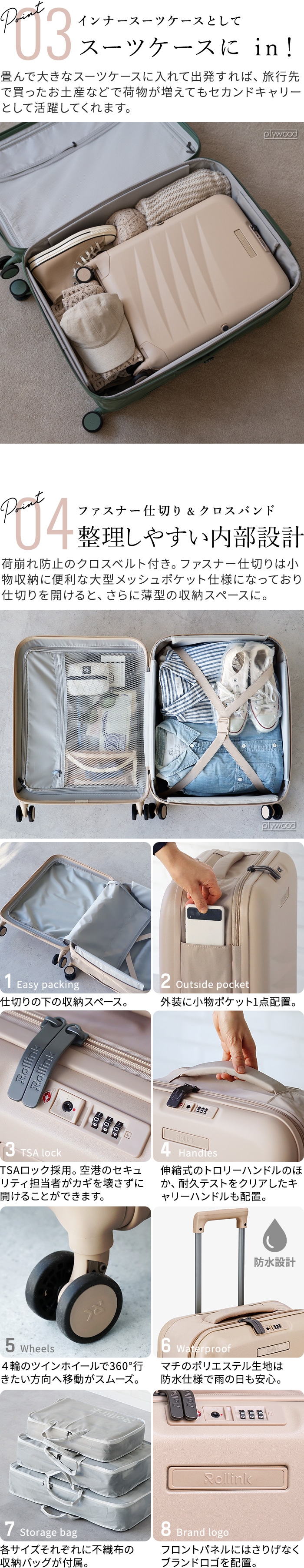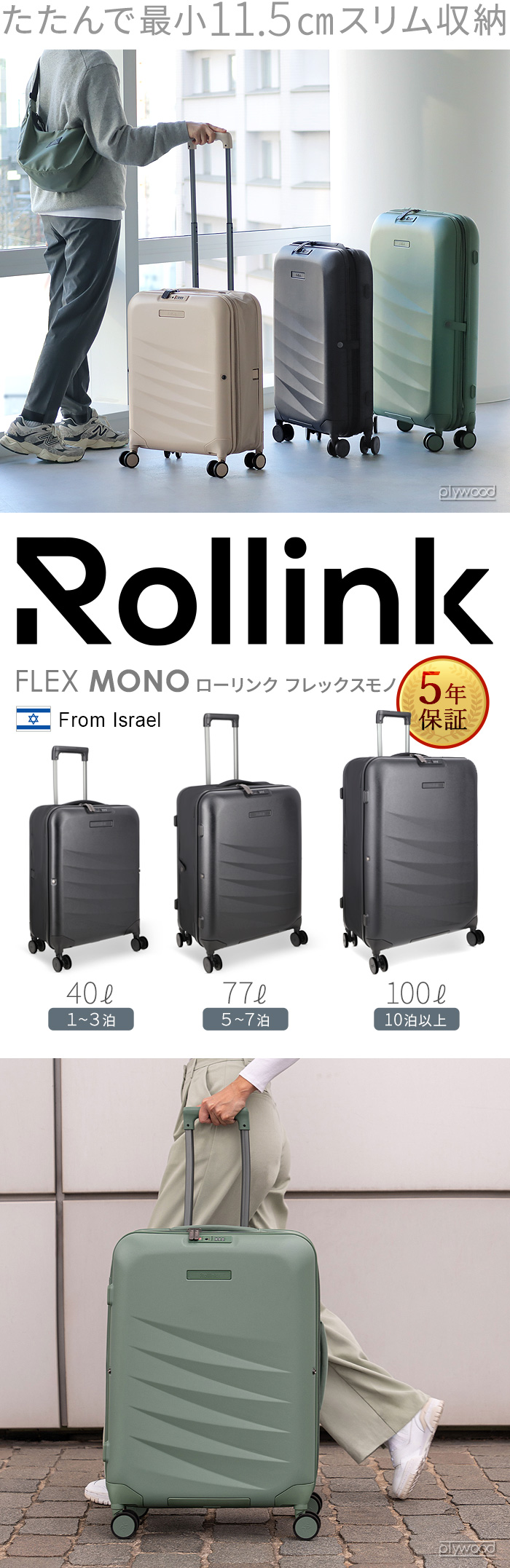 Rollink FLEX MONO スーツケース ≪40L/シフティングサンド≫ 折り畳み 機内持ち込み キャリーケース 伸縮 TSAロック 静音 軽量 国内旅行 小型 出張 縮む 折りたたみ式 キャリーバッグ 大容量 おしゃれ 4輪 2泊3日
