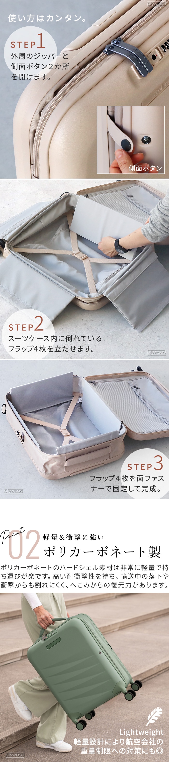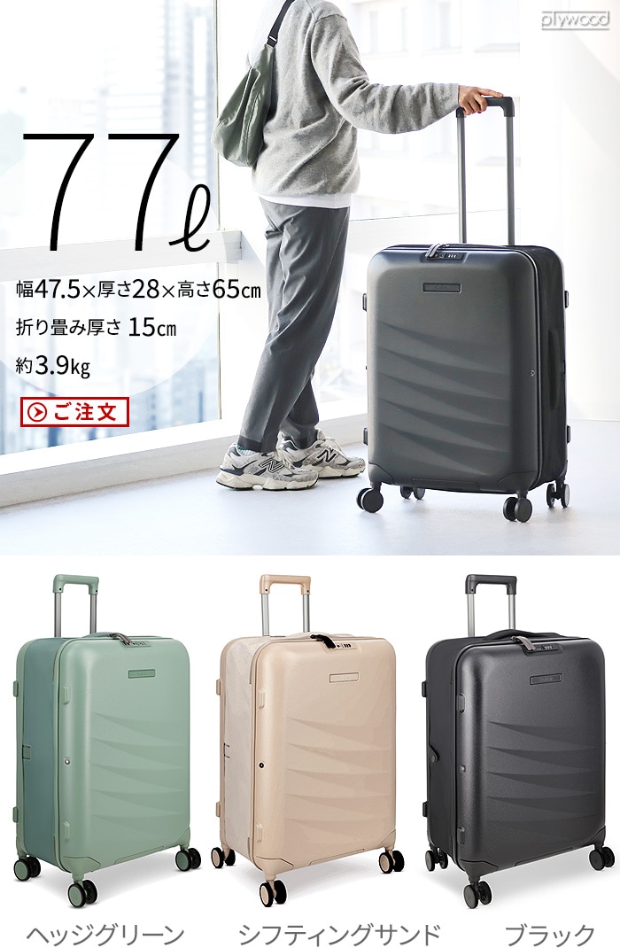 | 専用収納バッグ付き 折り畳みが簡単で収納場所を選びません TSA承認済みのロックを内蔵 40Lのみ機内持ち込み可能 ほとんどの主要航空会社で機内持ち込み可能です ※持ち込みの際は、航空会社のガイドラインに従ってください |