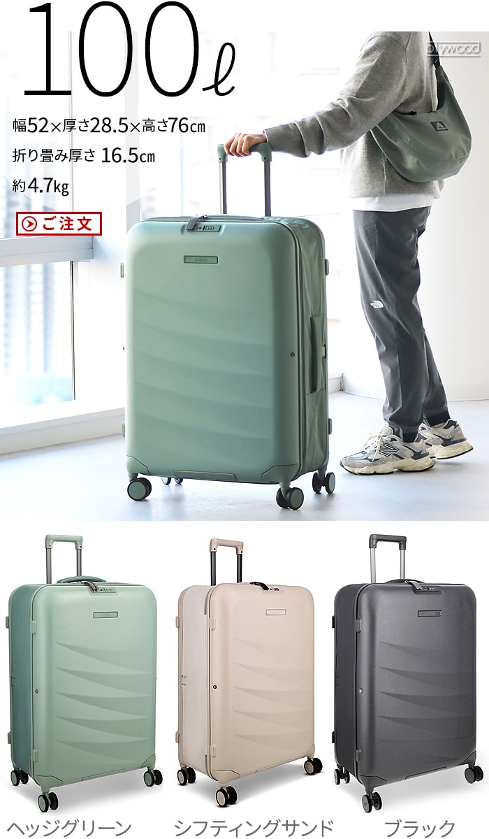 | 40L:(約)幅40×奥行20×高さ55cm 77L:(約)幅47.5×奥行28×高さ65cm 100L:(約)幅52×奥行28.5×高さ76cm |