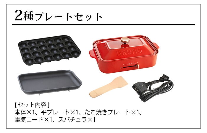 | 平らプレート×1 たこ焼きプレート×1 フタ×1 木製スパチュラ×1 |