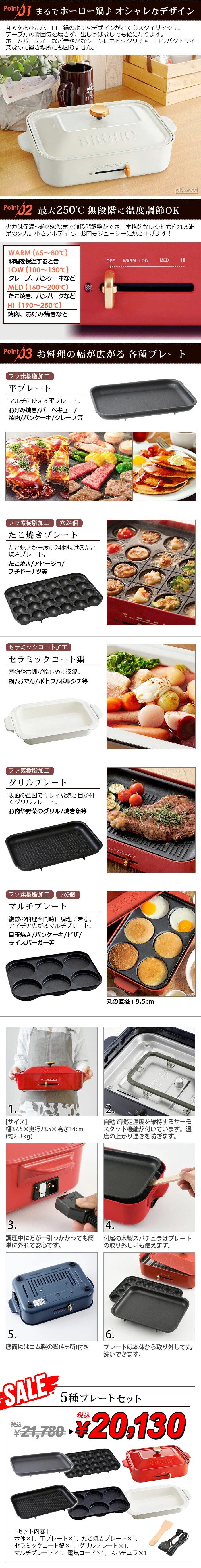 SALE【特典付】ブルーノ コンパクトホットプレート 本体&5種プレート BRUNO Hot Plate ≪ホワイト BOE021≫ 2~3人用 たこ焼き 焼肉 鍋 たこ焼き器 家電 結婚祝い ホット おしゃれ プレート 蓋
