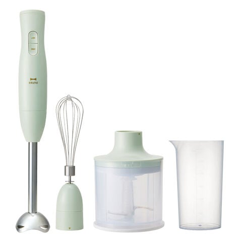 | 本体×1、ブレンダースティック×1、ホイッパー×1、ホイッパー接続部×1、チョッパー用ブレード×1、ブレンダーカップ×1、チョッパーボトル×1、チョッパー用内フタ×1、ボトルカバー×1、すべり止め/フタ×1、クリーニングブラシ×1 |
