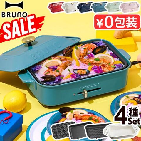 ブルーノ コンパクトホットプレート 本体&4種プレート グリルプレート付 BRUNO Compact Hotplate ≪ホワイト BOE021≫ ホットプレート