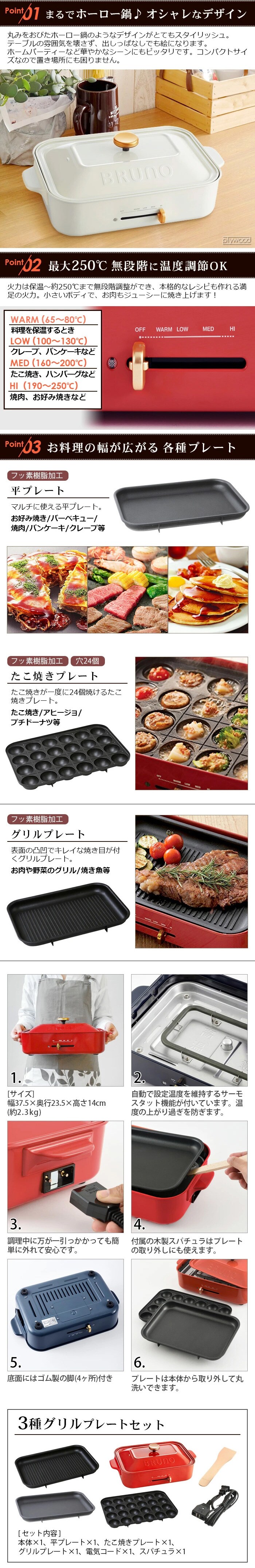 【特典付】ブルーノ ホットプレート 本体&3種プレート グリルプレート BRUNO Hot Plate ≪レッド BOE021≫ コンパクトホットプレート 2~3人用 たこ焼き 焼肉 バーベキュー たこ焼き器 家電 結婚祝い