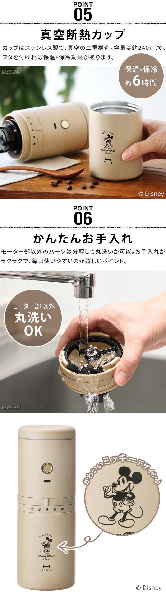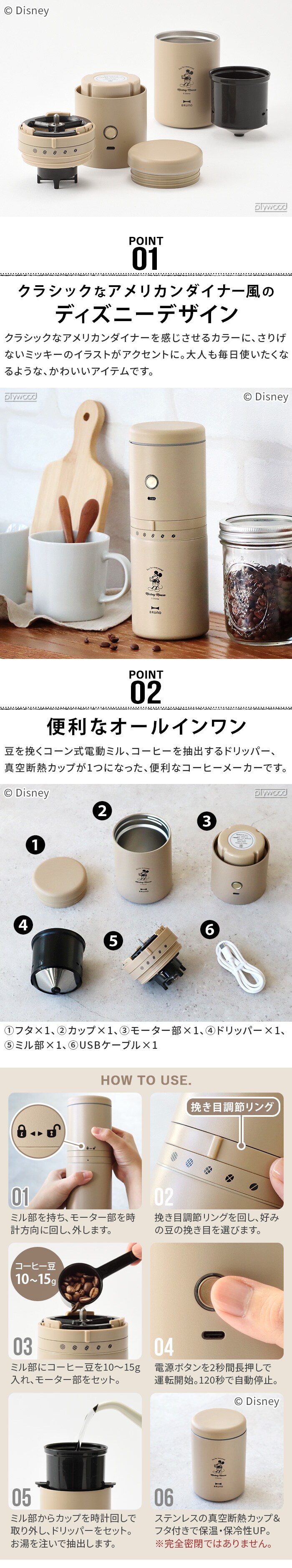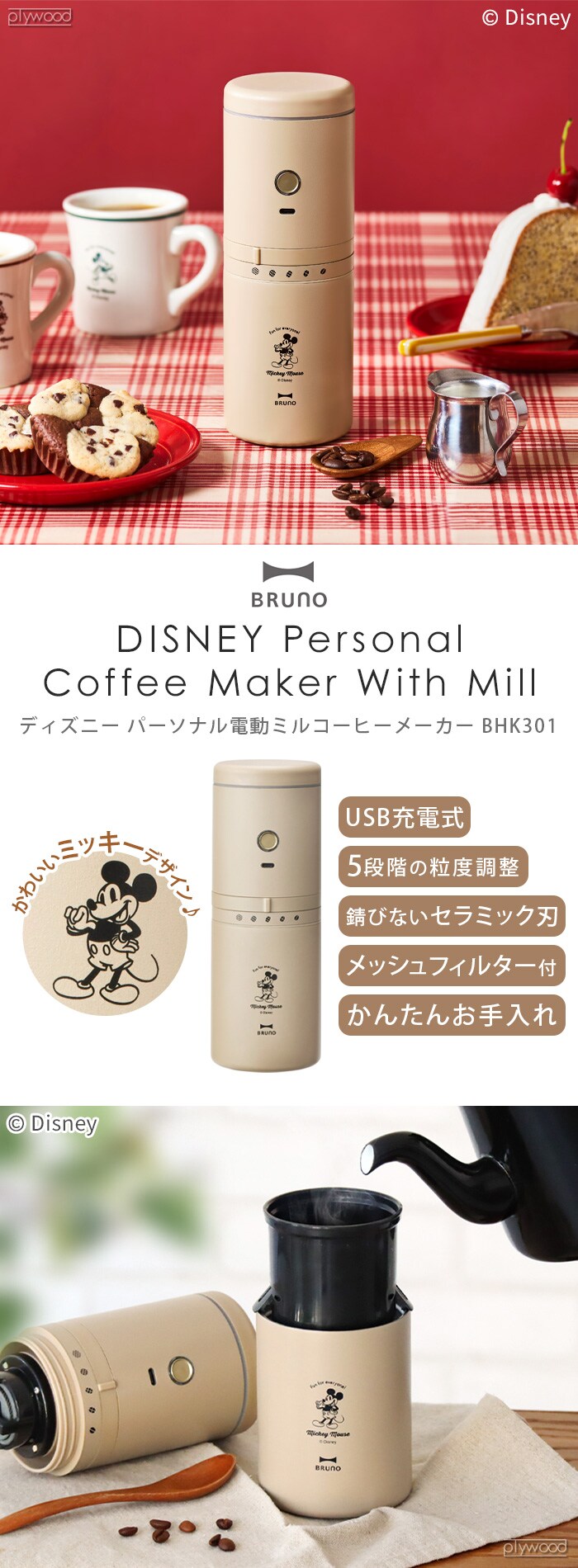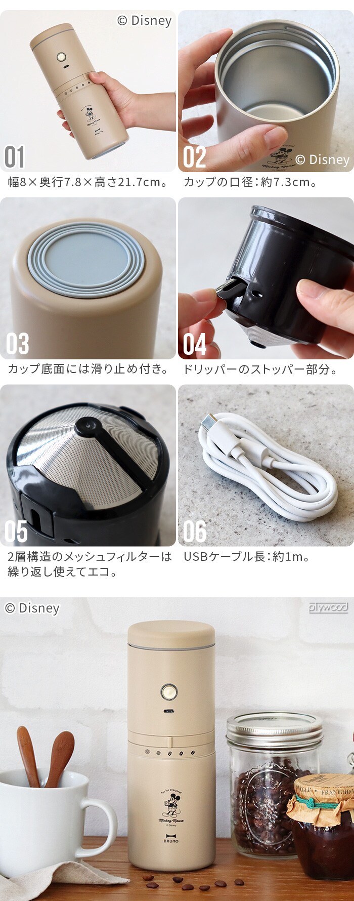 ★30%OFF★ DISNEY×BRUNO ディズニー ブルーノ パーソナル電動ミルコーヒーメーカー ≪BHK310-BE≫ ミッキーマウス コーヒーミル コードレス 一人用 コニカル式 コーン式 USB ギフト