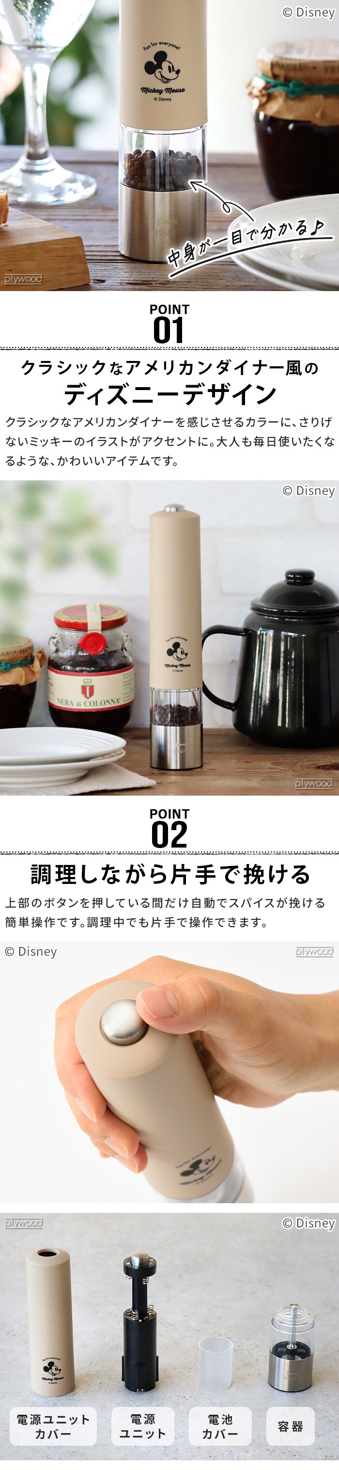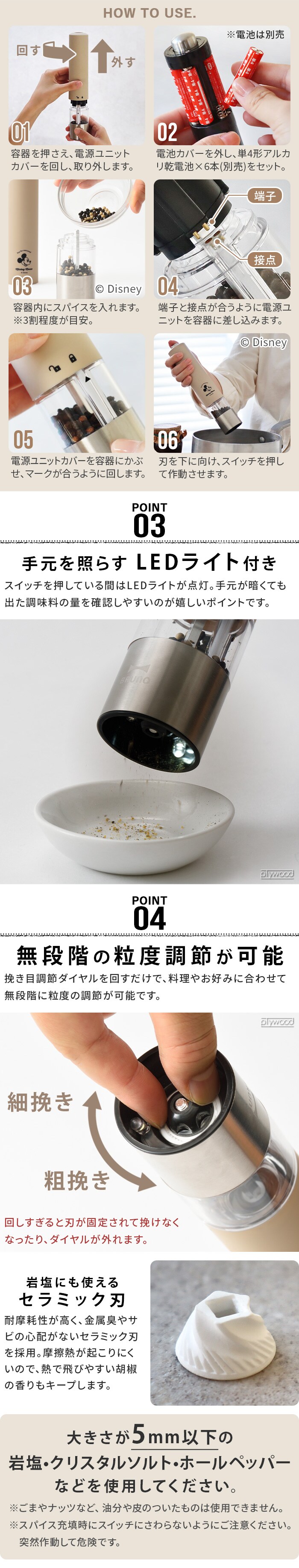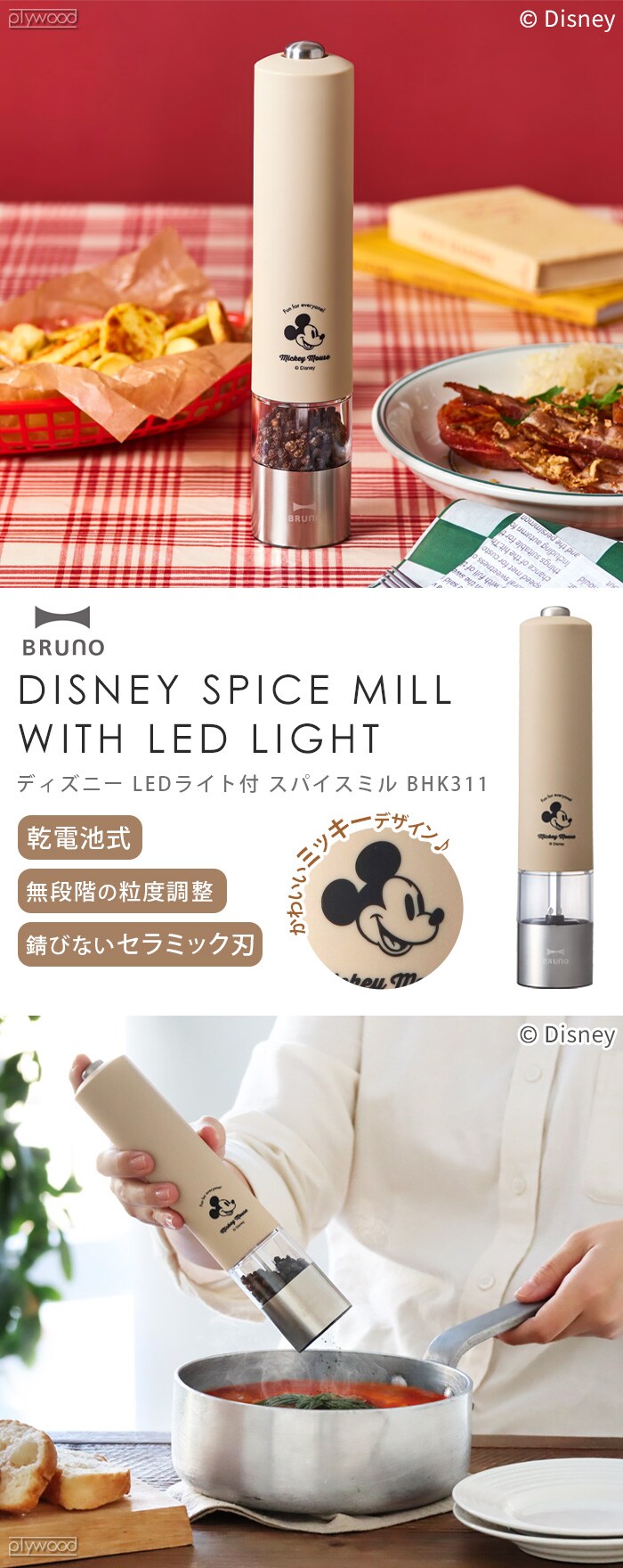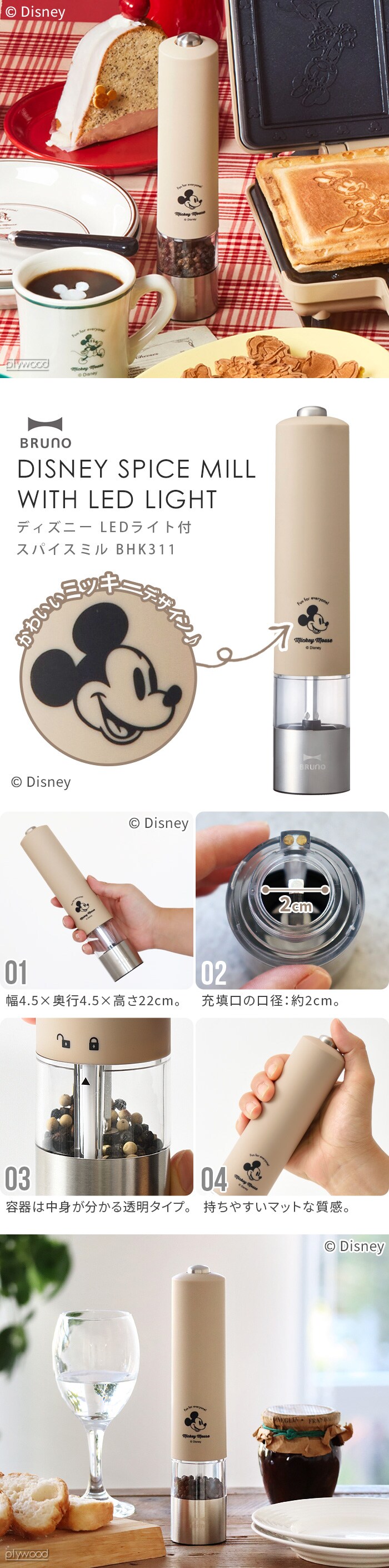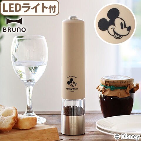 ★30%OFF★ DISNEY×BRUNO LEDライト付 スパイスミル ≪HK311-BE≫ ディズニー ブルーノ ミッキーマウス 電動ミル ソルト ペッパー ミル 乾電池タイプ 粗さ調整 ギフト