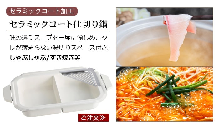 | こちらの商品はセラミックコート仕切り鍋のみとなっております。本体は別売りとなりますのでご注意下さい。 |