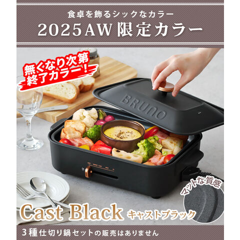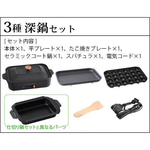 【特典付】ブルーノ コンパクトホットプレート 本体&3種プレート 深鍋 BRUNO Compact Hotplate ≪キャストブラック(深鍋CB) BOE021≫ ホットプレート 2~3人用 たこ焼き 焼肉 鍋 家電 結婚祝い おしゃれ 蓋