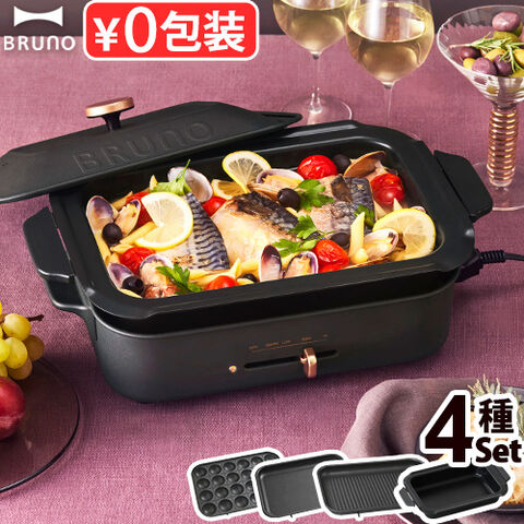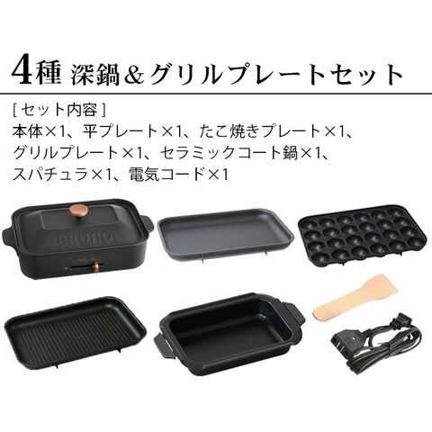 【特典付】ブルーノ コンパクトホットプレート 本体&4種プレート グリルプレート付 BRUNO Compact Hotplate ≪キャストブラック(深鍋CB) BOE021≫ ホットプレート 2~3人用 たこ焼き 焼肉 鍋 たこ焼き器 家電 結婚祝い おしゃれ